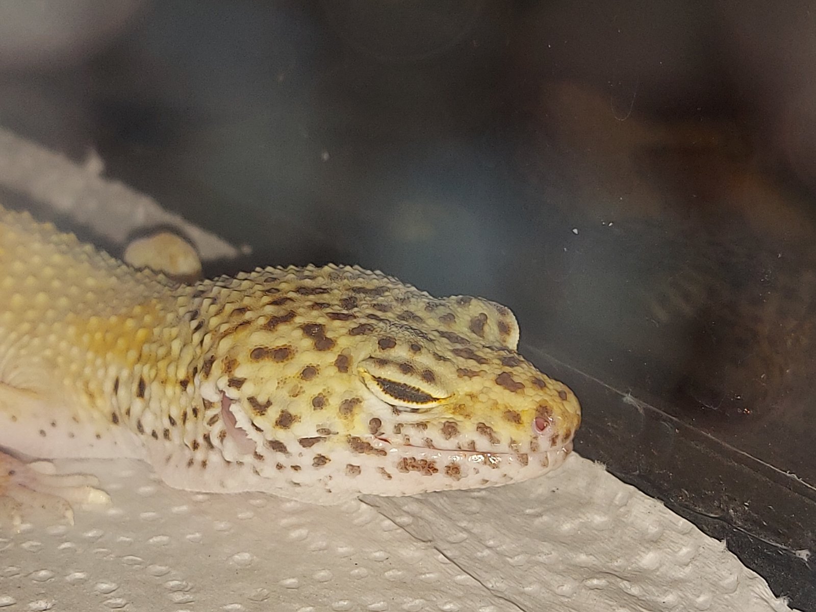 Tengo un gecko leopardo de un poco más de un año de edad, mudo de piel pero en su cabeza quedo un poco por lo que procedí a quitarla. Logre notar que no los abre y hay algo parecido a una capa en sus párpados, aparte me ha costado que coma. ¿Alguien sabe cómo poder tratarlo? Los veterinarios cercanos no atienden exóticos yo la situación actual (Covid-19) me es difícil movilizarme. Adjunto imágenes. Algunos dicen que puede ser conjuntivitis pero no estoy seguro, Agradecía bastante que me ayuden.