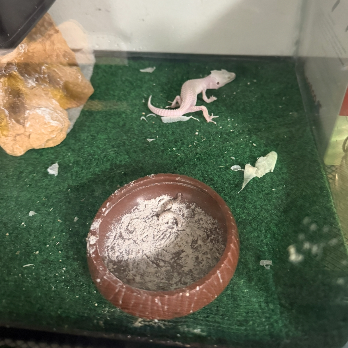 No muda la piel logre que mudara por que le di dos baños de agua tibia con ZILLA SHED-EASE REPTIL BATH. Mientras que que mi otro gecko está super fuerte, come solo y muda perfectamente cada cierto tiempo. Por favor ayuda!!!