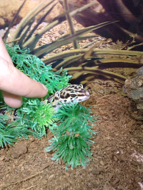 Cuando esté "relajado" en su terrario, enséñale la mano pero a distancia. Las primeras veces huirá, pero cuando vea que no haces por tocarle o cogerle, verás como será él el que se acerca a cotillear.