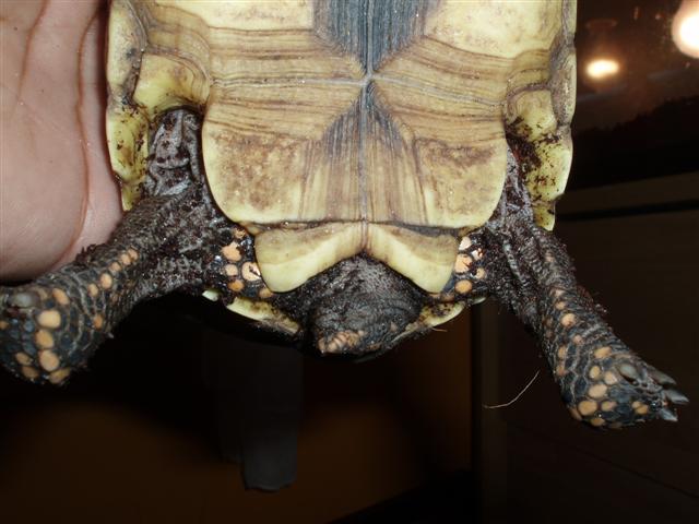 Hola, muy bonita tu tortuga, tan solo comentarte que no es una geochelone denticulata, sino una geochelone carbonaria.En cuanto al sexo creo que es un macho