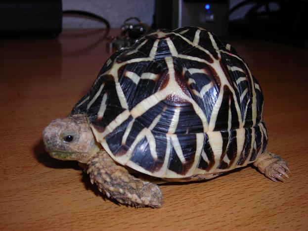 Pues aquí os pongo mi nueva adquisición, una hembra de Geochelone Elegans que me pillé en expoterraria.