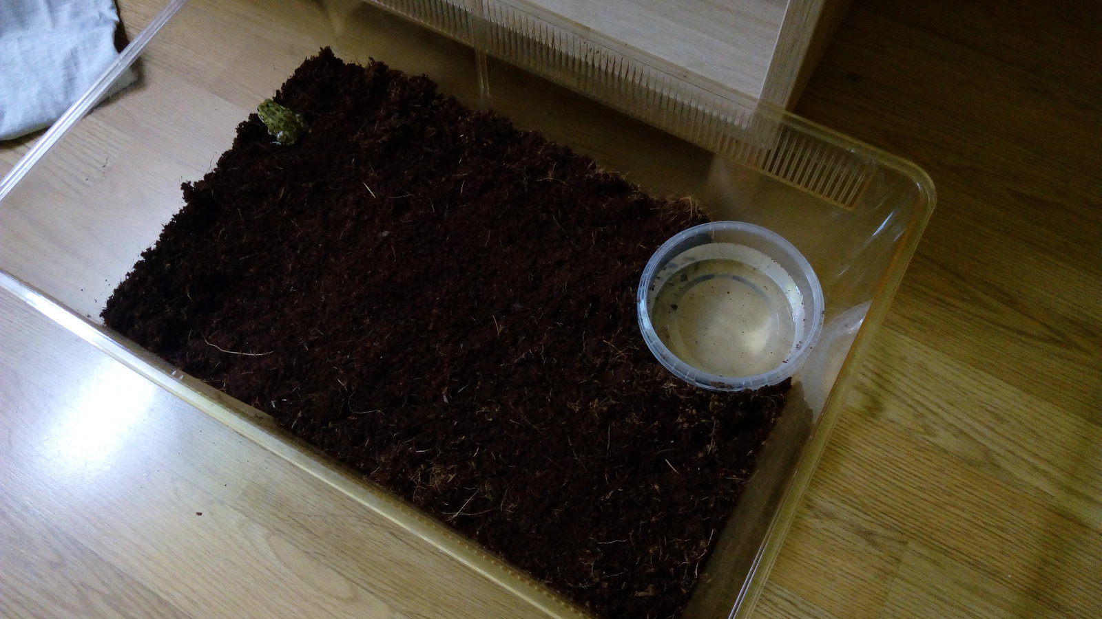 Ayer la puse en su habitaculo (fibra de coco humeda y pequeña piscina), y hoy la he dado su primer alimento (tres gusanos miel). Mañana probare langostas pequeñitas. Quisiera consejos para pautas de alimentacion para un crecimiento rapido y optimo, tengo gusanos miel y tenebrios, y langostas. Cogi gusanos por si le costaba comer al principio, pero parece qe no va a ser el caso.