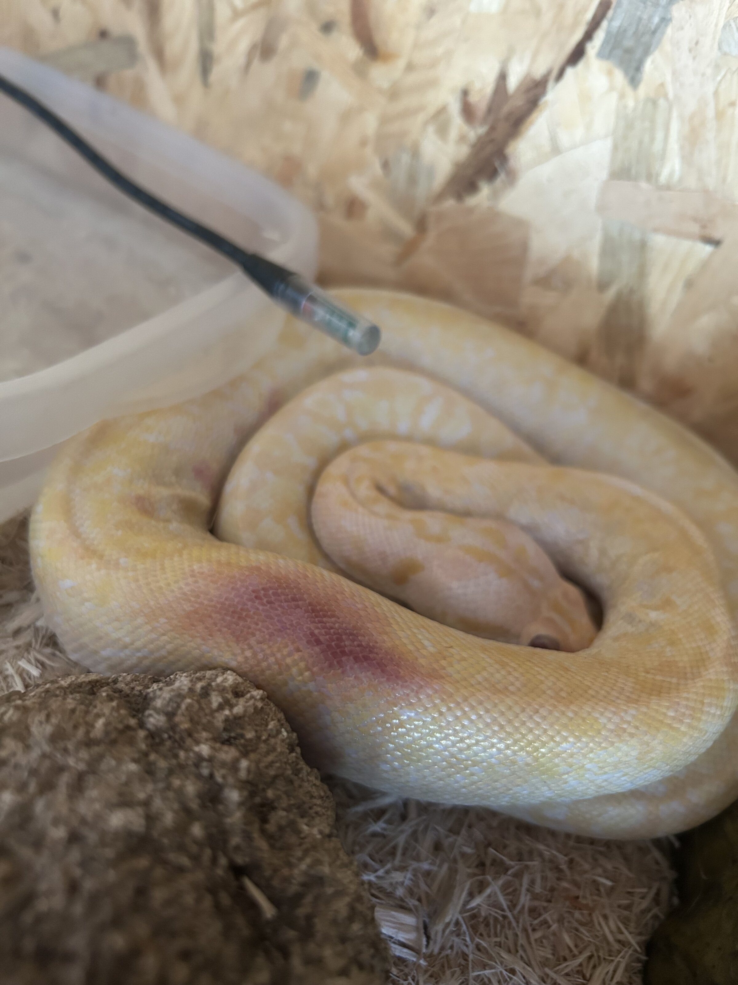 Hola a todos. Mi pitón bola tiene una mancha roja que comenzó siendo rosácea apenas visible pero con el paso de las semanas ha ido oscureciendo. No sé de qué puede ser, ayuda! Está completamente seca como si fuera su piel normal y tampoco supura ni parece dolerle al tocarla
