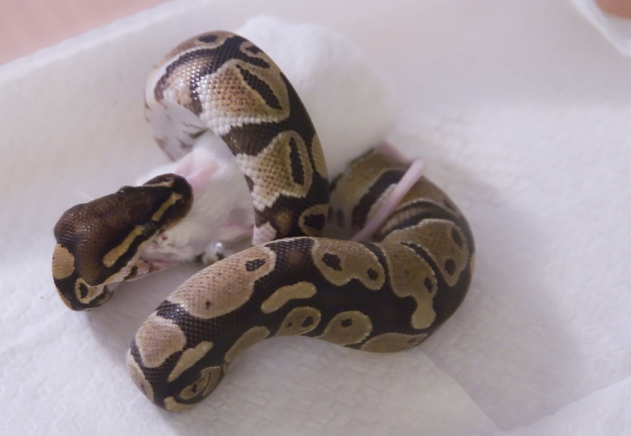 Si, el martes se comió un pinkie, pero creo que era un poco pequeño, porque al cabo de una hora apenas tenia bulto, asi que puede que se quedara con hambre.