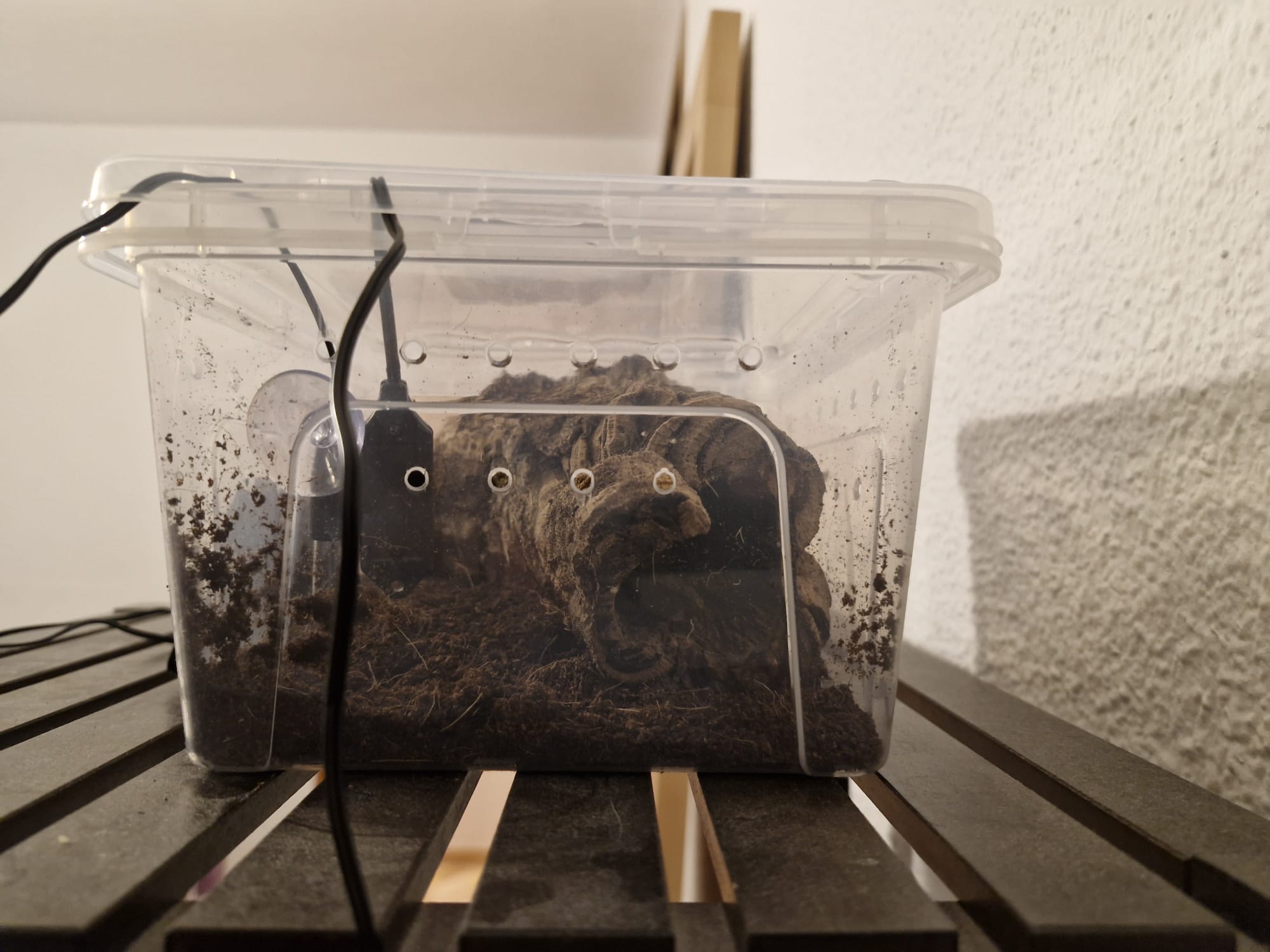 Yo veo el sustrato bien, siempre que sea fibra de coco y demás. Para tenerlo limpio y que no huela, puedes usar colembolos y cochinillas para que actúen como descomponedores. Usa una vez a la semana comida de peces en el sustrato para mantener la colonia.