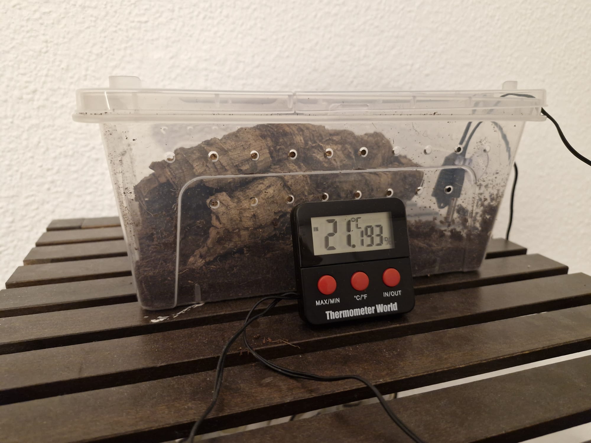 La humedad intenta bajarla, pulverizando solo por la noche, de forma que humedezca las paredes pero que no encharque el sustrato. La temperatura la veo baja, trata de tenerla en 26-28 durante el día, bajando a 22 o así por la noche.