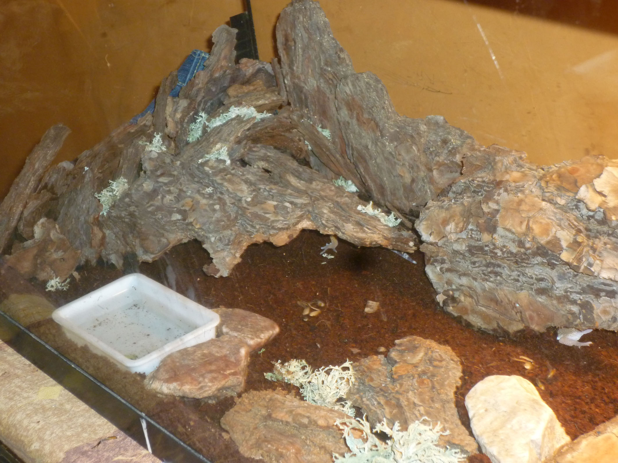 cuando ahorres un poco cambia ese bebedero por uno que asemeje una roca o algo asi, rompe con la estetica tan buena que has conseguido.