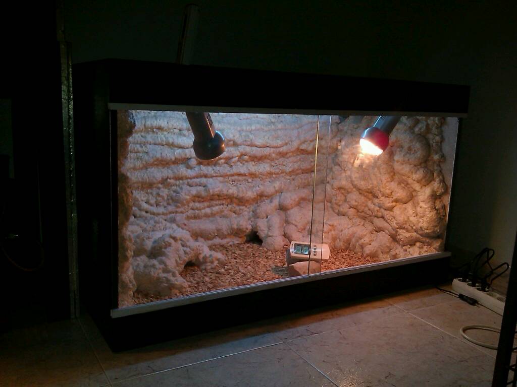 Yo pintaria el fondo con resina para pegarle arena o grava .ya que los uromastyx escalan y poco a poco te destrozaran la espuma.asi dandole durabilidad. Saludos