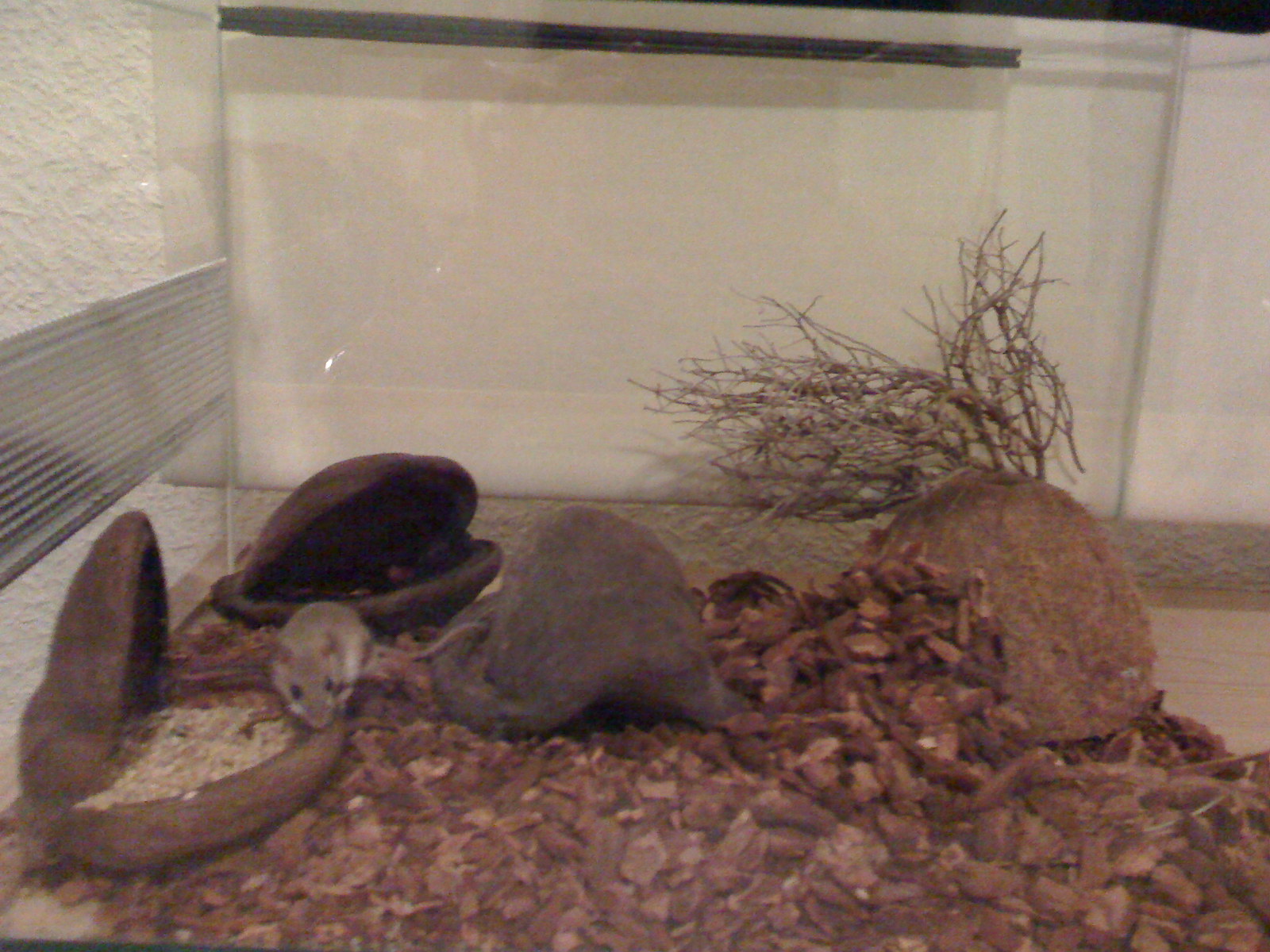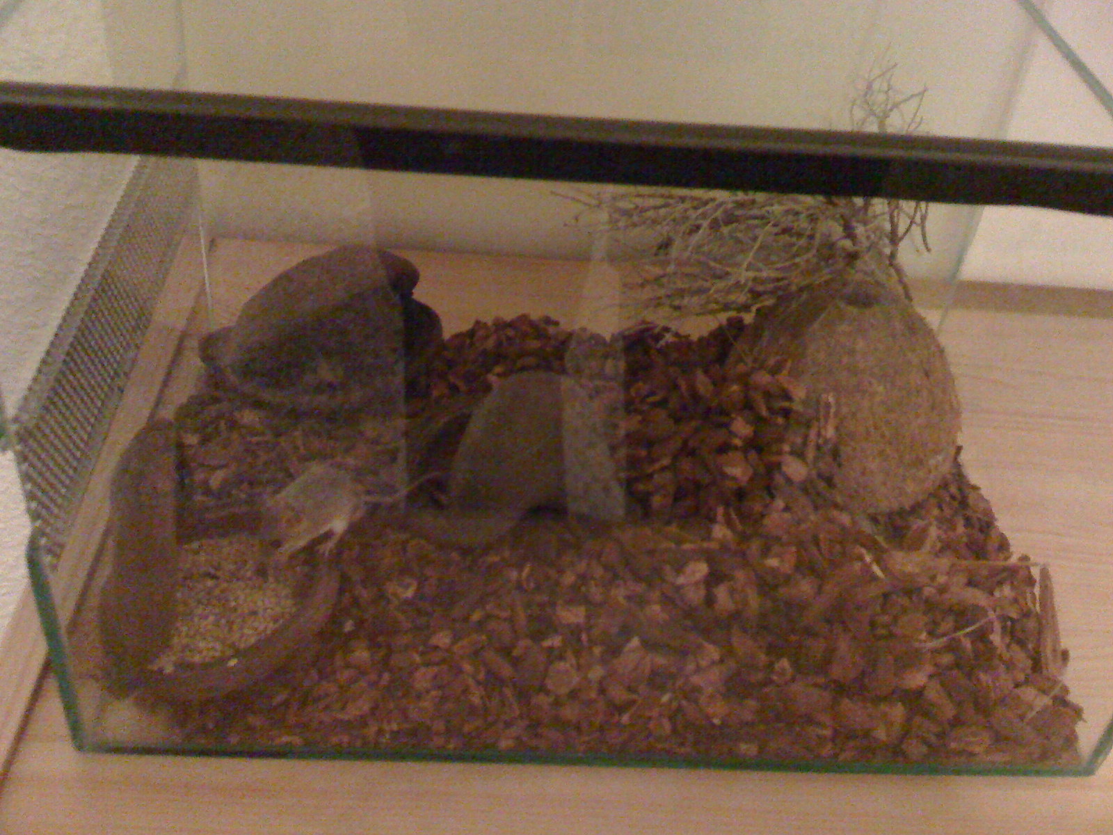 Bueno aquí dejo unas fotos del pequeño terrario que he montado, me falta encontrarle algún fondo chulo y unas ramitas para que puedan escalar.