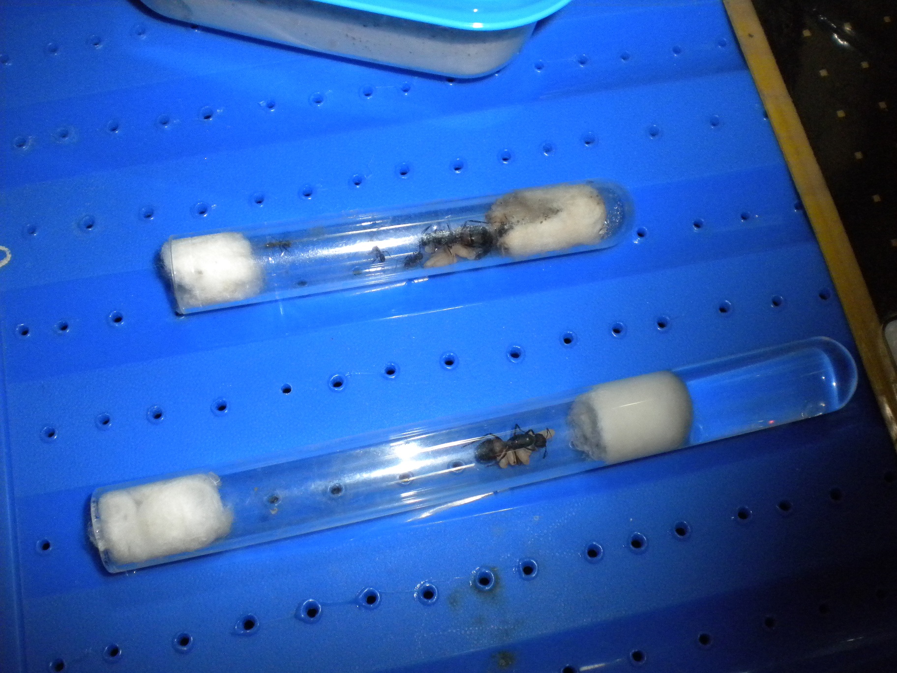 A parte de las Lasius y las Messor tengo un par de minicolonias de Camponotus sp que no he sacado fotos,y que estan pasando por un momento critico.Tambien tengo una reina de Camponotus cruentatus,y una minicolonia con 5 ``nurses´´(primeras hormigas),son las dos primeras fotos.