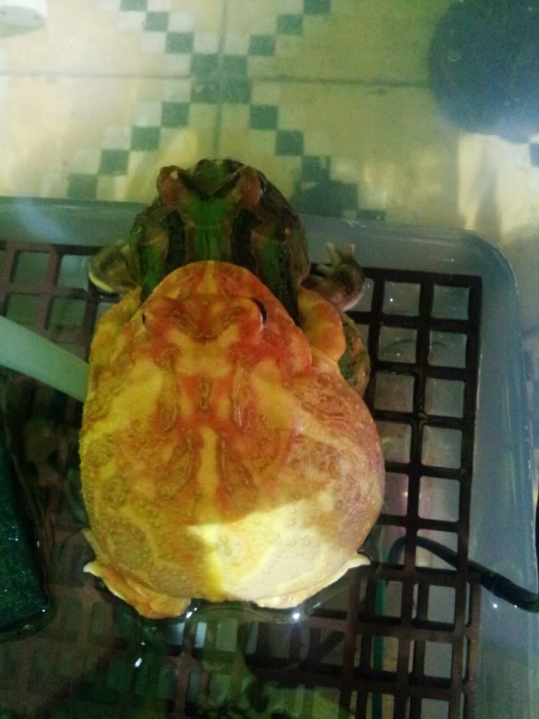 las adultas recien salidas de hibernación: albino macho, verde hembra.