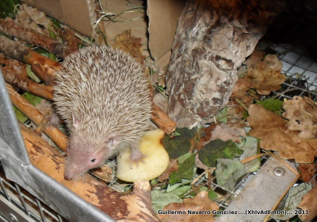 Hace bastante tiempo tuve un erizo africano... pero acabé vendiéndolo a un amigo; el animal se despertaba como poco a las tres de la noche, no podía disfrutar observándolo (pero se le escuchaba correr en la rueda).