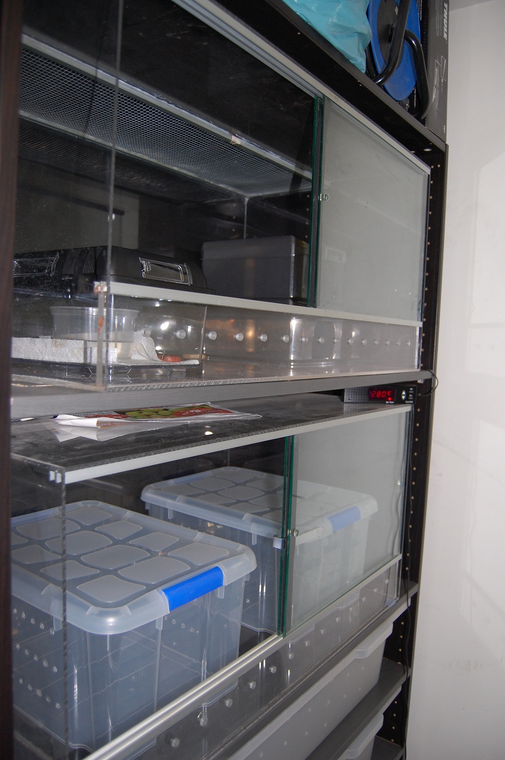 Pues como lo prometido es deuda, se que llego algo tarde desde que lo dije, pero bueno mas vale tarde que nunca, aqui subo unas fotitos de mis nuevos racks hechos con unas estanterias y cajones de IKEA, agradecer la insuperable ayuda para montarlos de un forero amigo, el sabe quien es, y que sin el todo este proyecto que estoy montando no hubiese llegado a nada :), son un poco malas por 2 razones, el cuarto donde las tengo es pequeño y esta petado y yo soy muy mal fotografo, si quereis mas detalle de alguna parte decirmelo, los racks estan calefactados por 2 cables de 10 metros y un termostato que controla ese cable para cada rack, vamos independiente cada uno por completo.