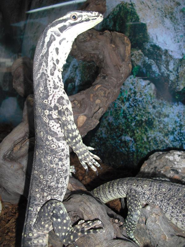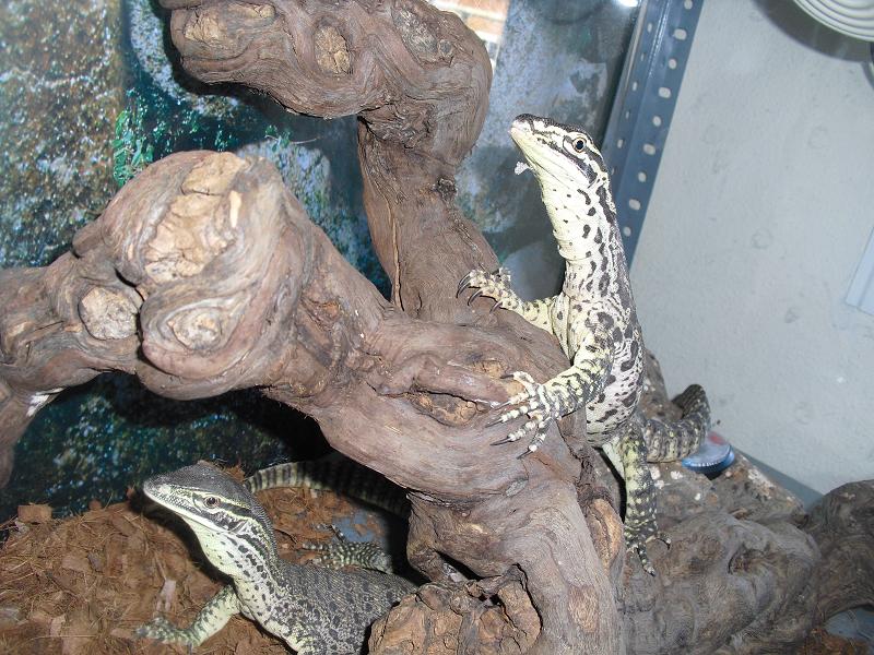 una pareja de panoptes...son mas inteligentes que la mayoria de reptiles que hemos podido tener,y lo pudimos comprobar con el macho,que rondando el 1,20cm se escapo de su terrario y arraso con lo que pillo entre ello una pareja de uromastyx ornata!