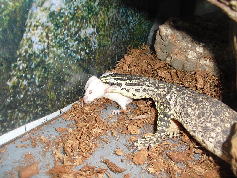 un detalle , yo no le daria ratones tan grandes a un animal que aun es pequeño y menos vivos...