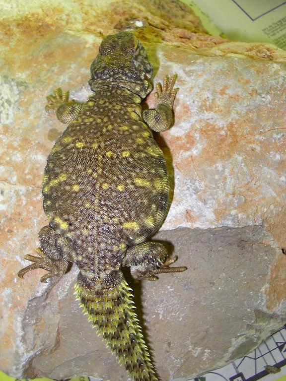 uno de mis peqes de uromastyx recien levantado.no veas el amarillo intenso q gasta al sol de mediamañana