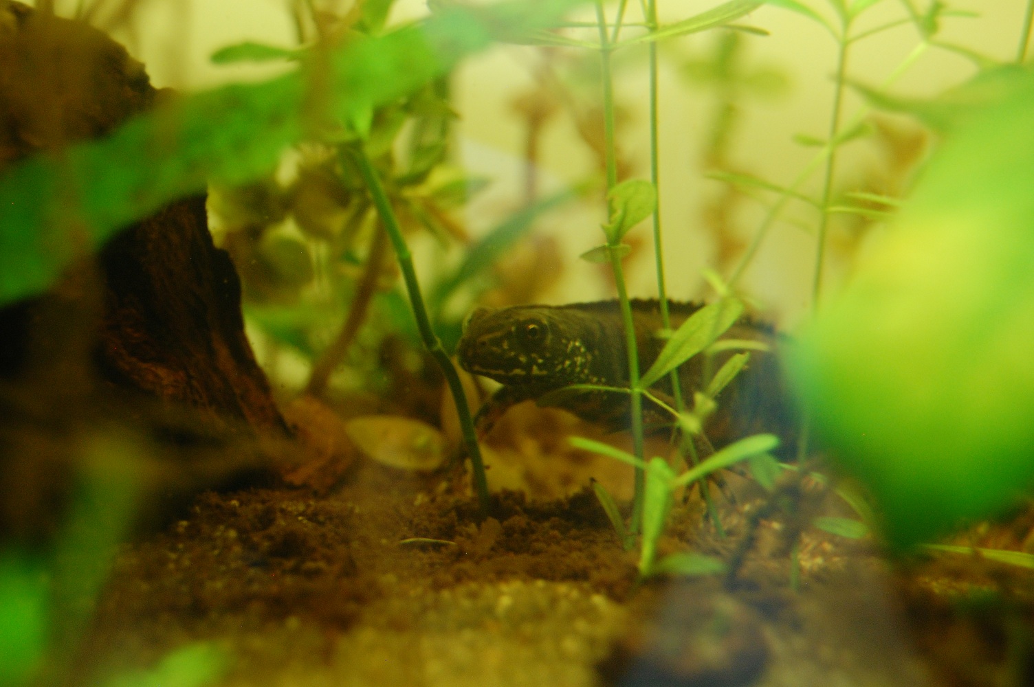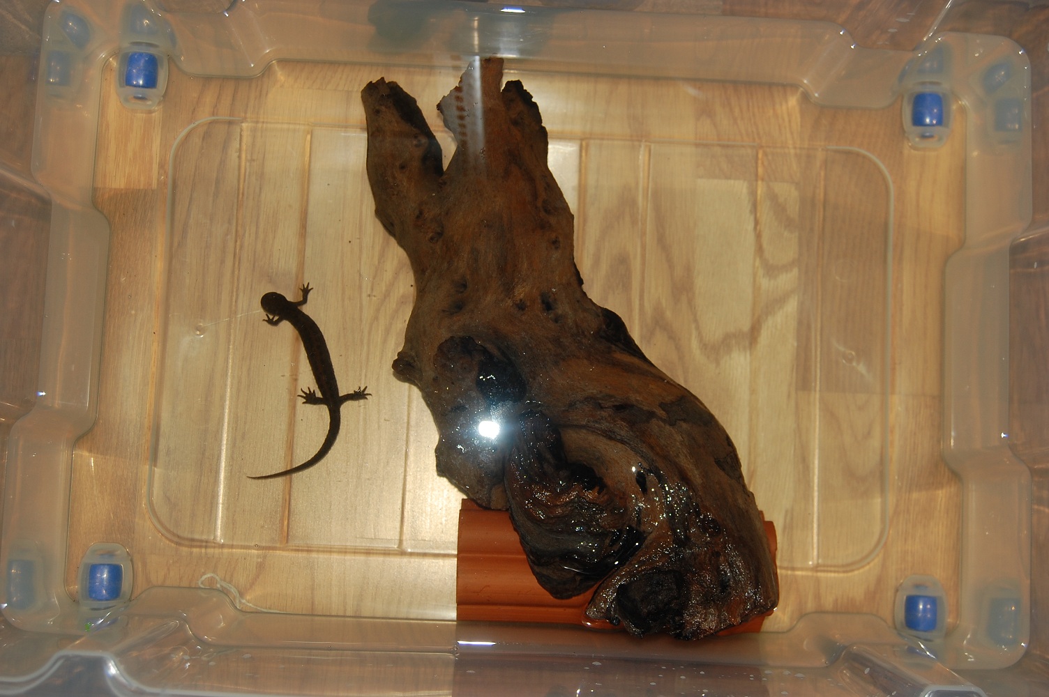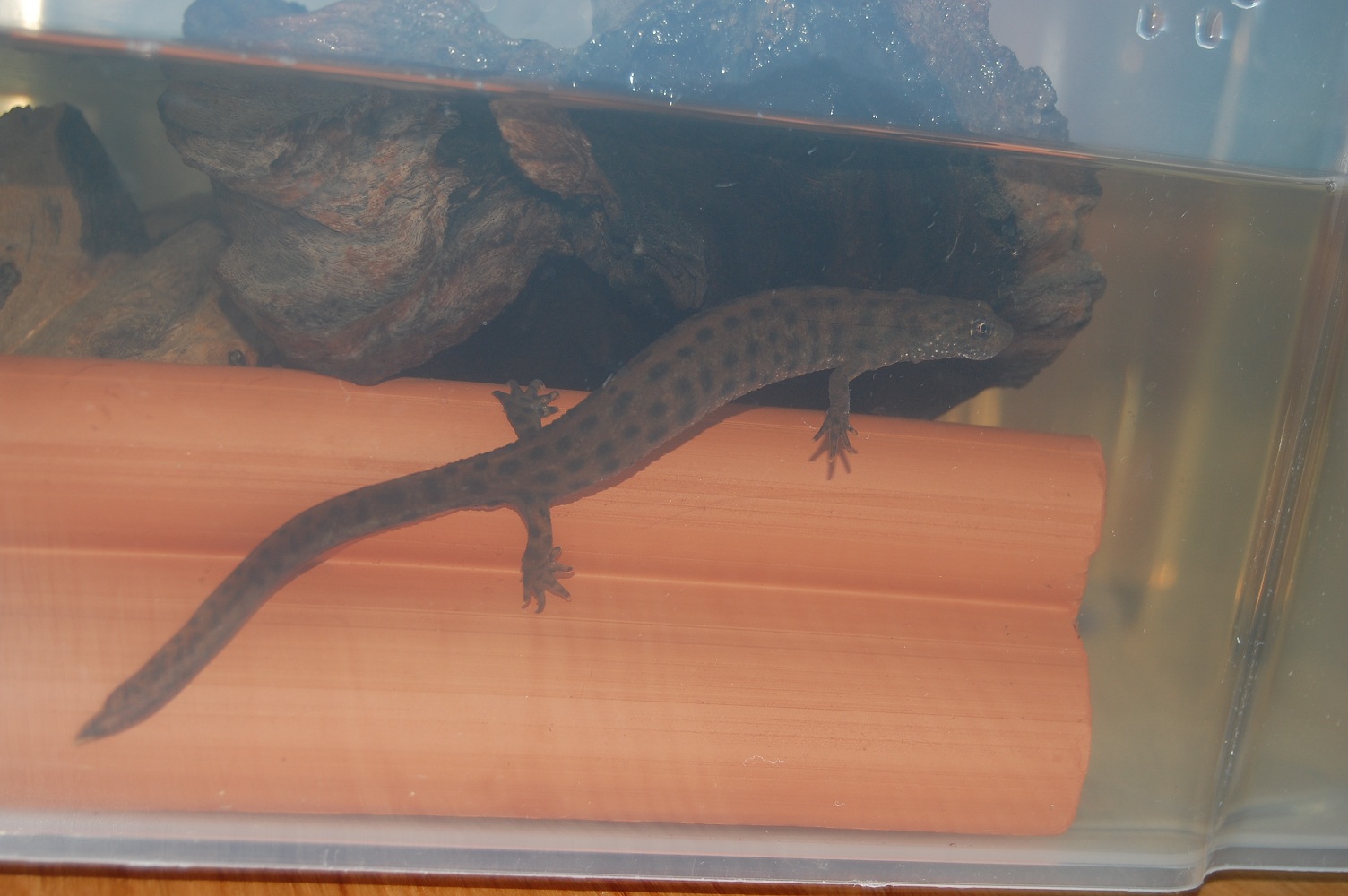 De hecho son troncos de mopani,si,son los taninos,son troncos grandes que no caben en mis cazuelas,asique los remoje en agua hirbiendo durante dias,luego los deje a remojo varios dias y muchas veces,y los que cabian los metia en la cisterna de mi retrete durante un tiempo,pero aun asi............agua marron,de todos modos,mientras no me provoque problemas o afecte negativamente a las plantas no me molesta.Los bichos van muy bien,y ademas,TENGO TRITONA NUEVA!!!!!!!!cortesia de toni,un compañero tritonero de Barna,del cual espero ver fotos de sus instalaciones y bichos :p