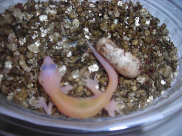 Pues aquí estan las dos primeras crias en salir del huevo (este año empezé tarde las cópulas), la madre es una SHCT het.raptor que ya adquirí preñada, y desconozco la fase del padre, pero por una de las crias que ha salido yo diria que es un mack snow.