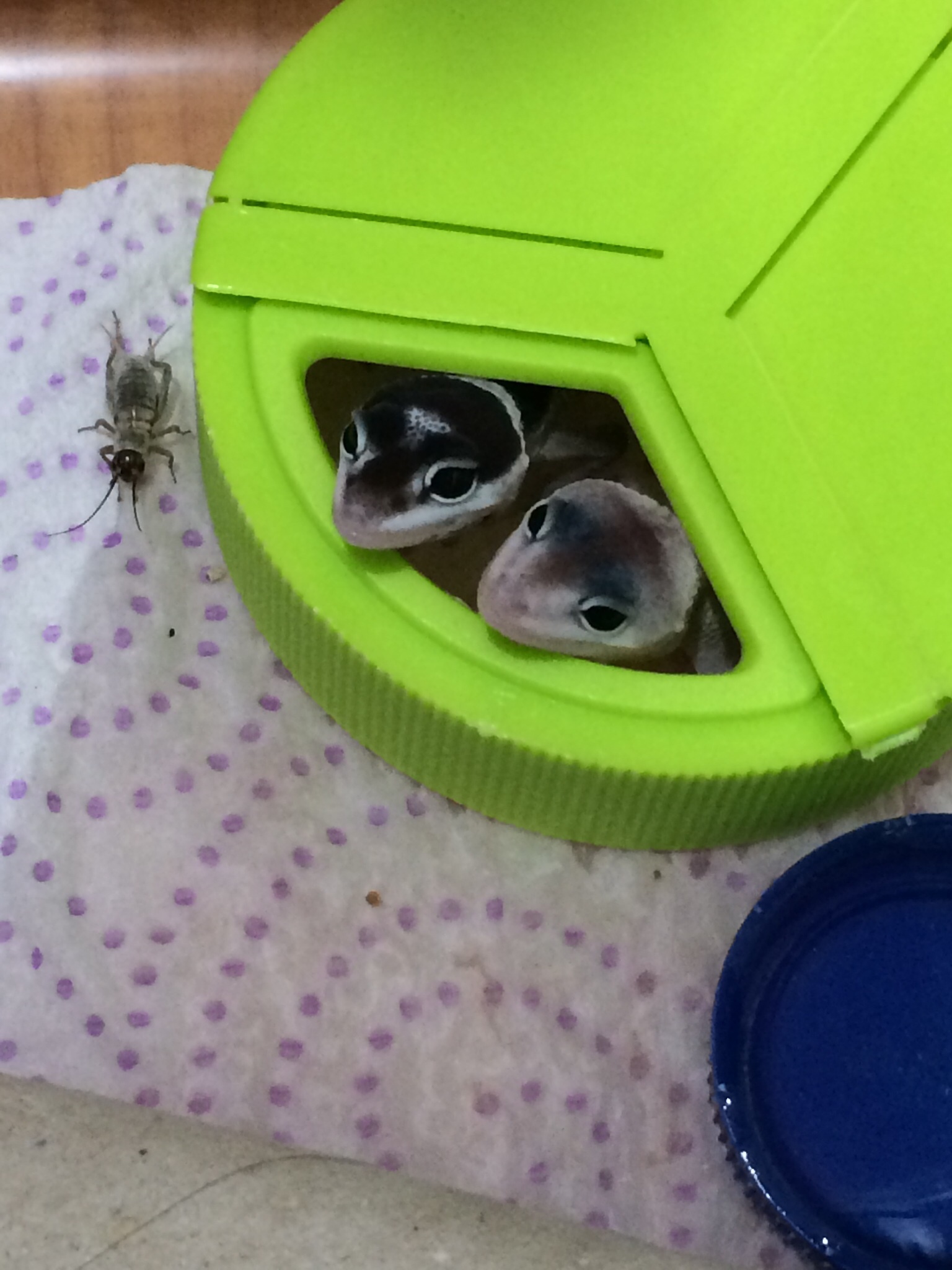 Bueno, aquí os traigo a los pequeñines de la casa, nacieron el día 3 asiq ya tienen 15 días y comen q estoy asustada, creo q acabare pidiendo en el metro. Les estoy dando calcio con los grillos 3 veces por semana y una de ellas calcio con d3, esta bien así o tengo q darle más o menos?
