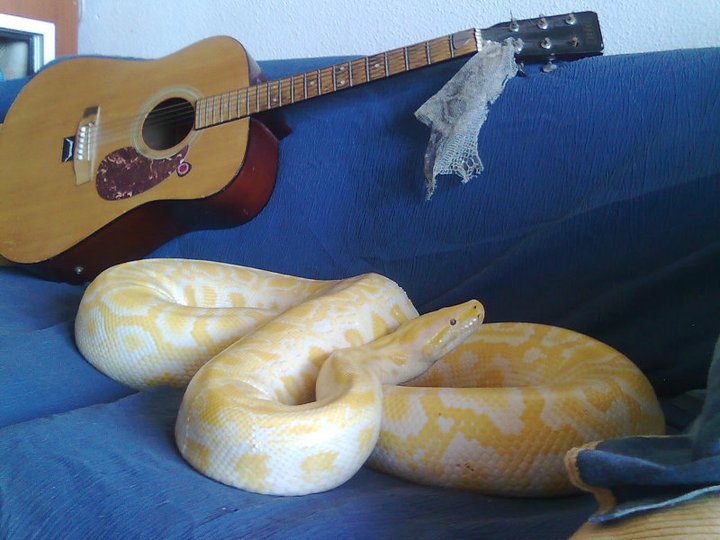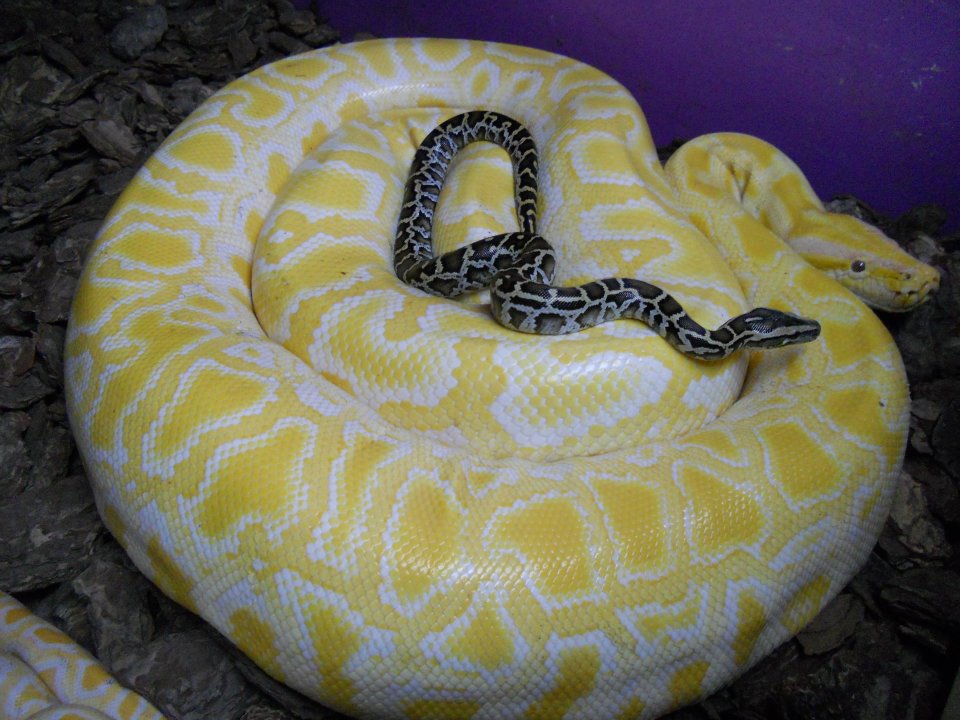 Bueno pues menos mal, es una albina preciosa y superdocil que la aprecio mucho porque la dejo suelta por casa con sus 40 kg ahora, y sale del terrario por la ventana lateral de PVC, se da su vuelta por la casa, y vuelve a su sitio, es como un perro, me encanta su carácter.
