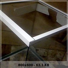 Ya está la base con los ángulos pegados, los dos laterales y el fondo, los cristales que he utilizado son de seguridad templados, por lo que no se pueden cortar, cuando rayas con la rueda de diamante no se rajan a lo largo de la rayadura, se parten en trozitos muy pequeños.