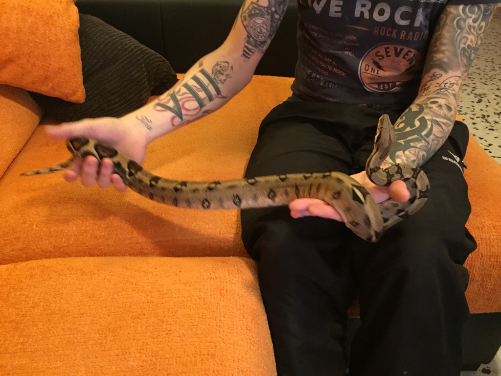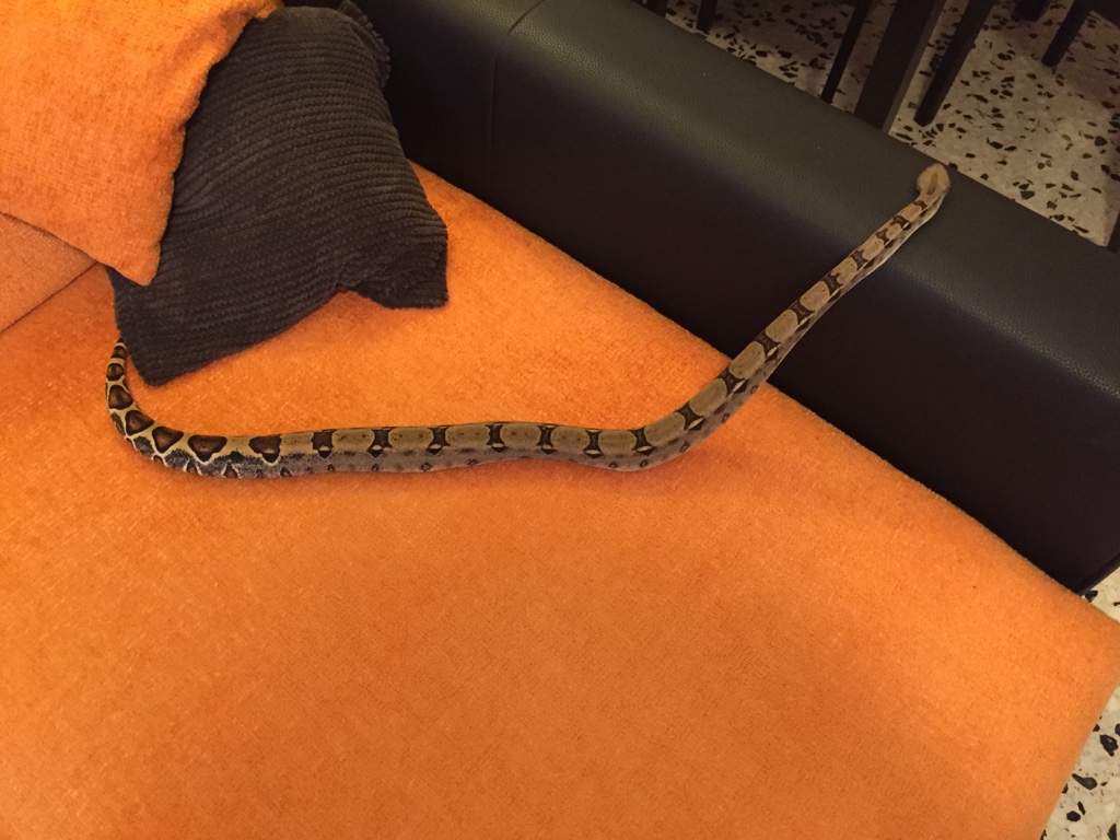 Actualizo ahora con 10 meses y un par de días, va creciendo sin conocimiento y comiendo como una lima le da igual que sea en muda que congelado o vivo no pone pegas jejeje cosa que me va bastante bien porque si se me pasan las ratas de tamaño las sacrifico y al congelador sin más os dejo unas fotos ( por cierto esta bastante oscura debido a que esta a punto de mudar )
