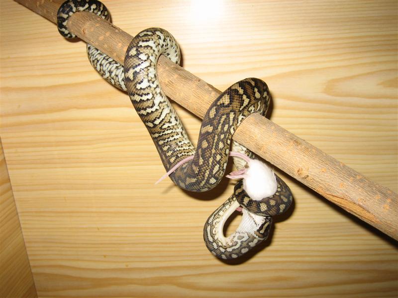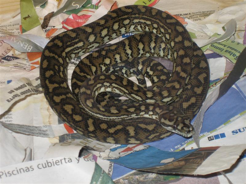 Morgul, respecto a tu cuestión de que macho elegir para criarlas en el futuro, pues mi opinión personal sería un macho de Morelia mcdowelli, ya que esa hembra tuya quizás no mejoraría en nada a la cría de una pareja de Morelia bredli puras, pero sí podría aportar un toque original a la cría X mcdowelli, podría resultar en la producción de similares a Red Coastal, o sea, una Pitón de Queensland o Mcdowell pero con tono rojizo y patrón con buen contraste. Pues eso, es sólo una idea personal, aunque quizás Pableras coincida conmigo, eso si no me tacha de hereje por proponer la propagación de los "híbridos" o "intergrados" ( lo que más os guste, que ni en los USA se ponen de acuerdo en este tema, je,je,).