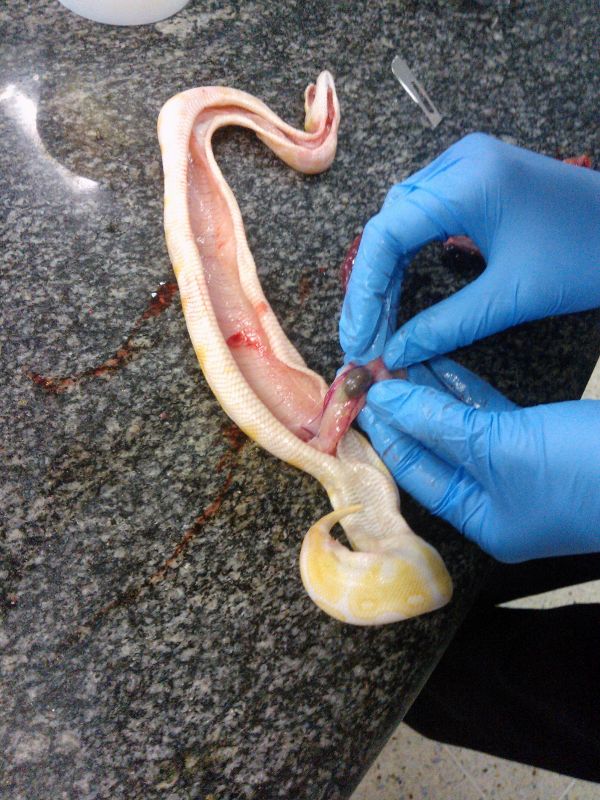 Hace un mes adquiri un piton regius albino de 6 meses. Al llegar a los 4 dias empezo con una salivacion y abrir la boca al respirar. Sin duda alguna empeze a tratar como neuomina. Manteniendo temp dia y noche 32 e inyectandole enroxoflacina. esto duro 7 dias y nunca hubo mejoria. Luego empeze con otro antibiotico amikacina y nada. Ahi decidi hace un cultivo y salio con pseudomonas y ambos antibioticos q le habia dado era sensible. pero nunca hubo mejoria solo mejoro la respiracion pero la salivacion no. luego empeze con nebulizaciones e inyectar un nuevo antibiotico ceftriaxona y nada. empeze a tratar como si fuese una estomatitis aunque no tenia lesiones aparantes solo la salivacion. le hacia lavados todos los dias con clorexidina y ps nada no hubo mejoria. Murio antier. ahora mi pregunta. Ella tenia una lesion en su columna vertebral. Esto de nacimiento. Ya por ahi habia un problema congenito. Sera q este animalito nunca mejoro por q tenia un problema degenerativo de nacimiento. Ya hice necropsia y voy a mandar sus organos al patologo a ver q me dice. Habra manera de saber si es algo congenito. Adjunto pongo fotos de ella junto a otro ejemplar para q noten la lesion en su columna y fotos del rx. Gracias espero respuestas.