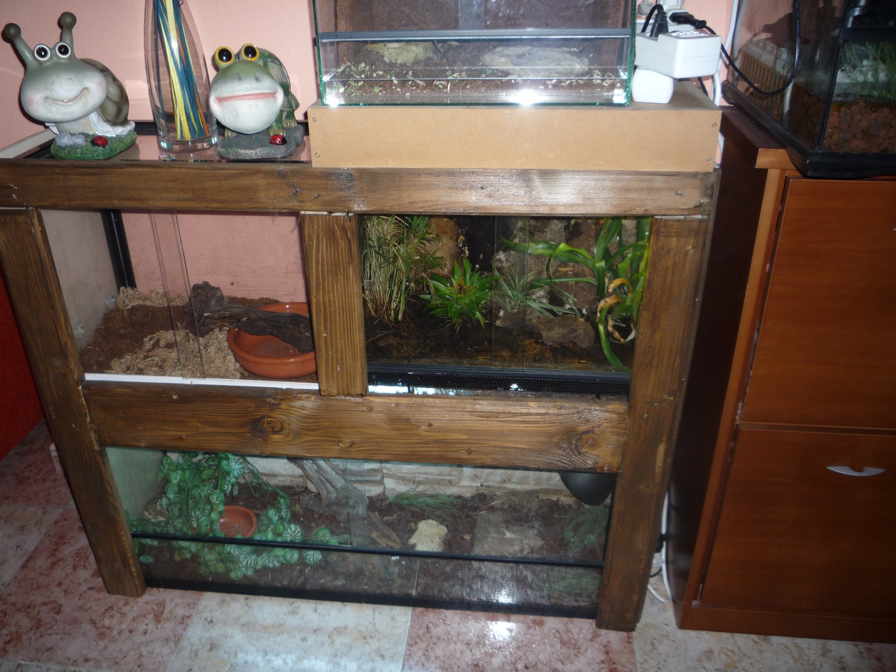 aqui un rack chapucero, que hay algun colubrido y un terrario, abajo hay un armario donde hay botes con animales en formol y disecados.... esto desaparecera para poner herptek aqui.