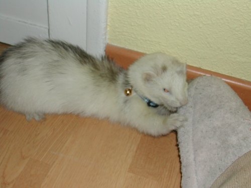 Bueno, aquí tengo las fotos de mis dos niñas. Morrigan, la primera que tuve, era una silver preciosa de ojos color burdeos (también les suelen llamar blancos de ojos oscuros) se murió hace poco y aún la hecho muchísimo de menos, era un angelito.