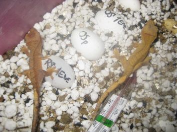 Asique le he vuelto a poner en la incu con su humedad y calor,sobre una tapa de plastico,mañana os podre decir lo que ha pasado,no espero que salga adelante(muy raro m parece xo puede que salga algo de todo esto)