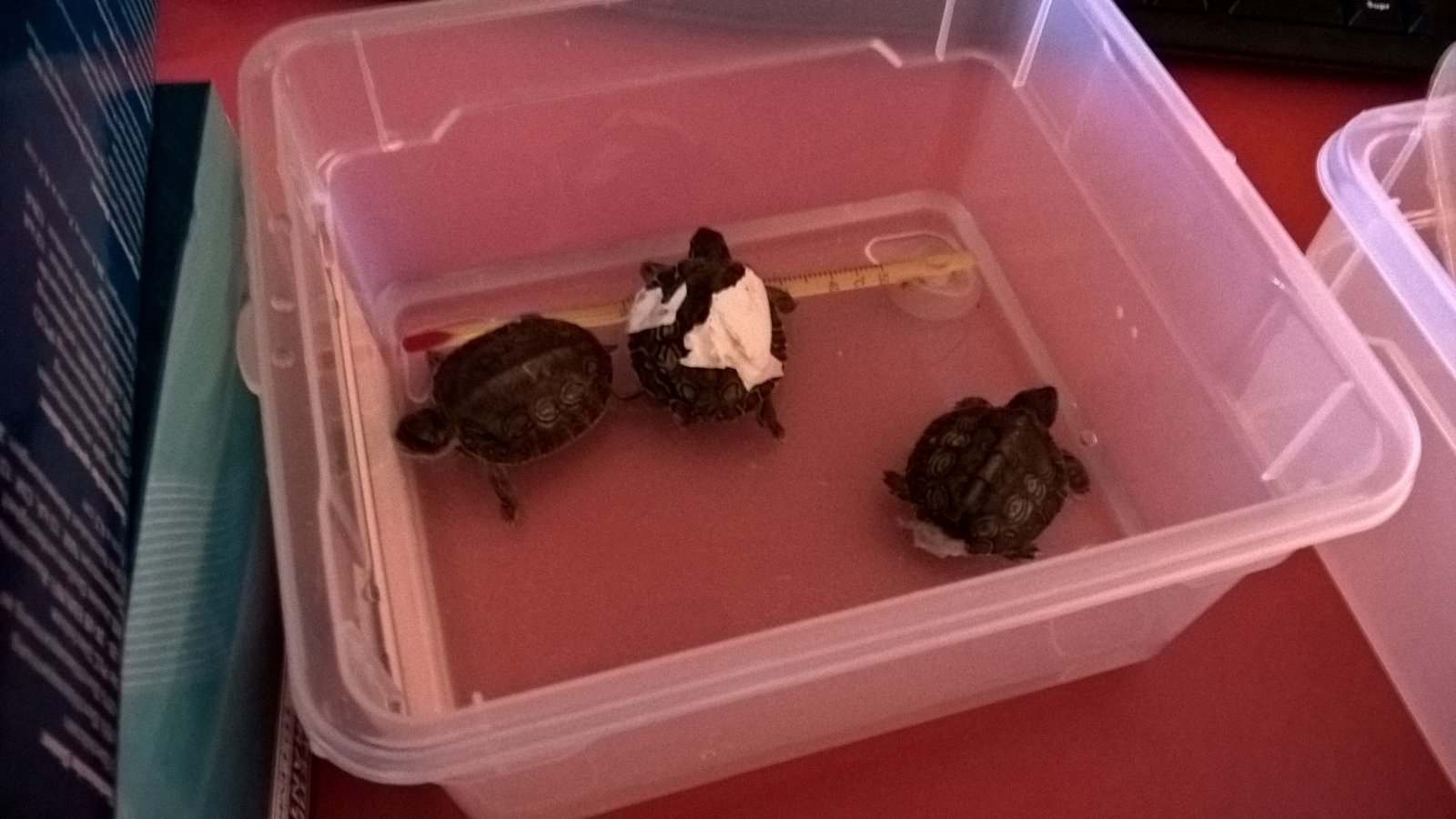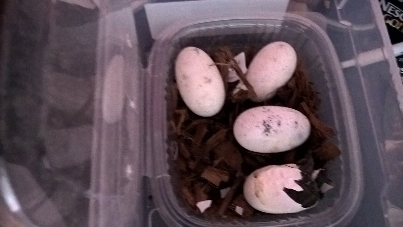 La verdad que estan bastante debiles, se las ve cansadas y no se si sobreviviran (Intentare actualizar!) pero ahi estan. Aun tienen algo de saco vitelino por fuera. Un año, en un cuarto a unos 18 grados de media (En verano igual eran 20, pero hasta junio y desde octubre, esta a 16-17º) Humedad si que habia, un 80%.