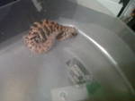 Como creo que sabeis es mi primer año en el intento de la cria de los uros, despues de criar otras muchas especies, sobre todo de lagartos arbolicalas y de tortugas de tierra, me meti de lleno en el mundo de los uros y la verdad que en puestas me ha ido bien, me han puesto casi tadas las hembras, ocelata, maliensis,flavifasciata y la ultima la ornata , despues de hacer muchas pruebas , me di cuenta que aunque a priori al ser lagartos deserticos pense que no era tan importante la huemdad, es un factor muy importante para la incubacin de sus huevos y la mayoria los he perdido deshidratados.Pero ha merecido la pena porque no he visto un lagarto tan maravillosos como este ornata , es una autentica maravilla y estamos en casa como loscos con este nuevo miembro de la familia.
