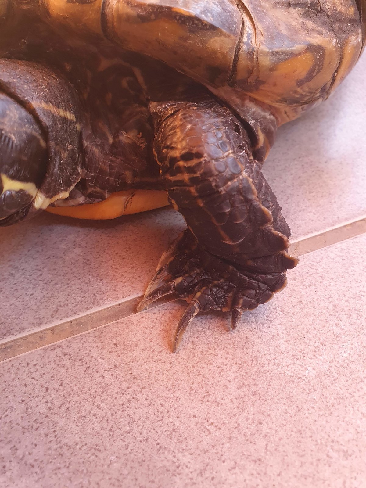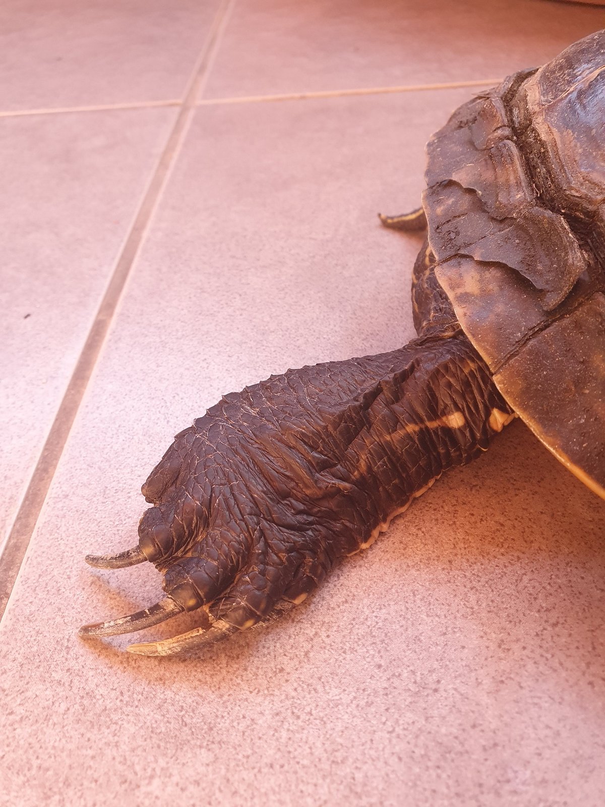 Junto a la concha veo que la piel está muy escamosa y supongo que es por el hecho de que no pasa suficiente tiempo dentro del agua. A continuación procederé a hablar del "acuario".