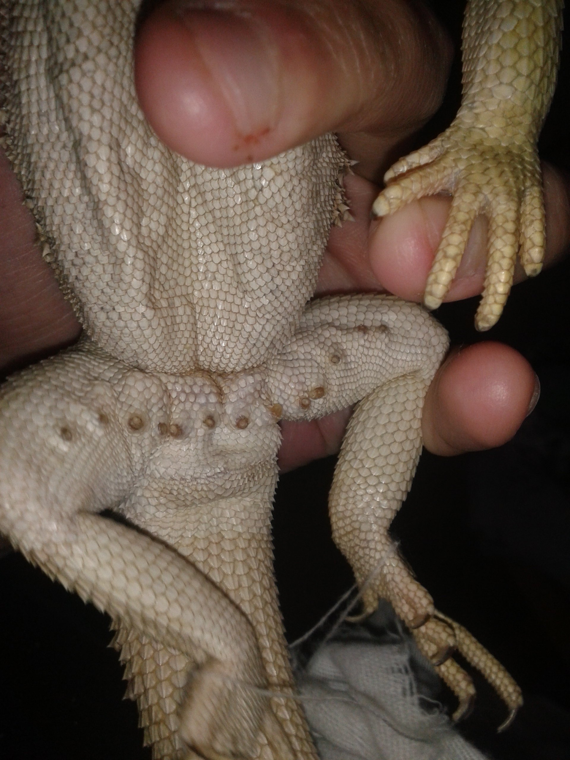 Hola a todos, me acabo de fijar en mi pogona cerca de la cloaca y entre las patas tiene como unos puntos como si fueran callos, sabéis si eso es normal?