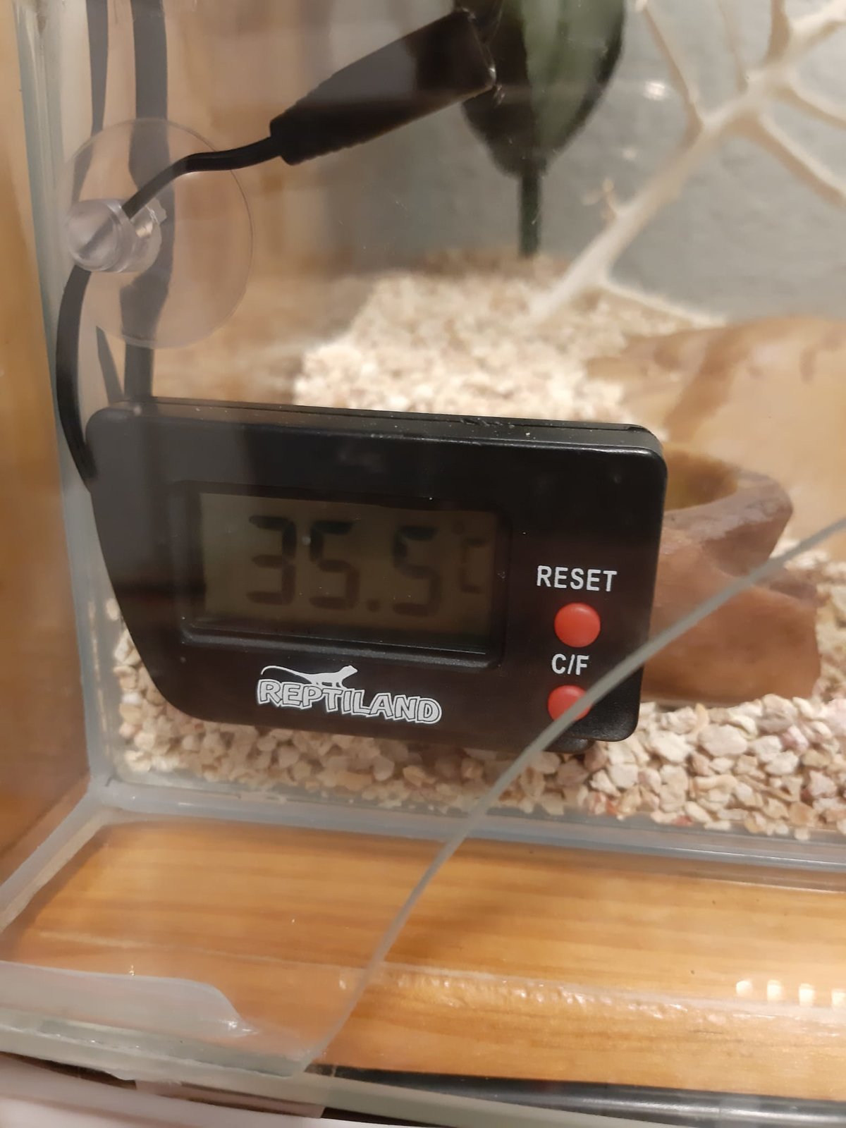 Estoy empezándome a preocupar porque no sé si he hecho algo mal o hay algo mínimamente defectuoso. ¿Puede ser que el termómetro de reptiland me esté marcando más de lo normal? ¿Por qué el termostato no se apaga si llega a 33º? No tengo otra forma de medir la temperatura de forma fiable en ese punto... Lo mismo es algo común, pero quería saber si vosotros os fiáis más de una cosa o de la otra. He bajado el termostato a 30 y se ha apagado, por lo que puede que esté algo descalibrado. He pensado en hacer lo que hice con un calentador de acuario que tampoco me calibraba muy bien: ¿puedo fiarme del termómetro y simplemente bajar el límite del termostato a 28ºC para que supuestamente corte cuando hace 33ºC?