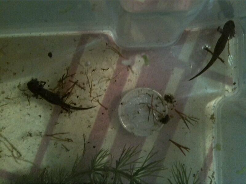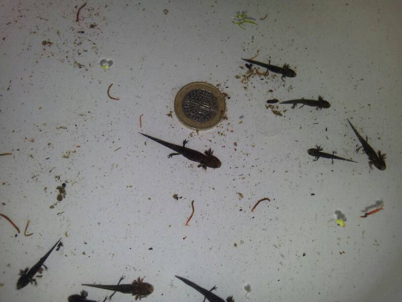 Hola amigos comentar que en cosa de una semana uno de mis tritones casi ha reabsorbido las branquias y otro esta casi igual. Ahora parece que el mas adelantado esta aprendiendo a respirar y a bucear segun observo... empieza el mareo...