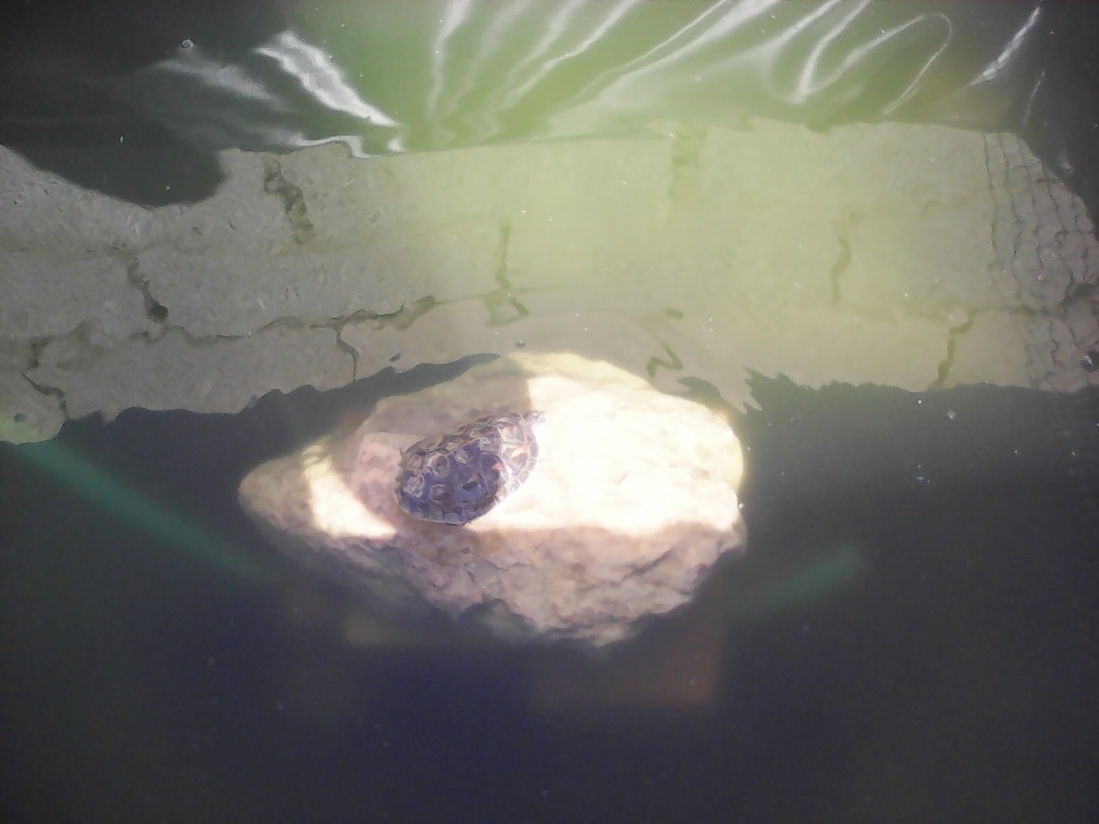 El tema es que me dijeron en la tienda que si al agua le daba mucho sol, se iba a por verde y me vendieron un antialgas. Pero aun así, se sigue poniendo verde. El sol da de llenon si todo el día. Tan solo le tengo puesta dos piedras para que se suban y tomen el sol.