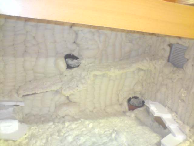 Aqui los ultimos pasos. Despues de hacer la caja, recorte unas plantillas de carton para las paredes del terrario (fondo, laterales y suelo), respetando los aireadores que hice en los laterales. Hecho esto, se empieza a echar la espuma de poliuretano (ADVERTENCIA para los primerizos: mancha todo lo que toca y es dificil, por no decir imposible, de quitar; usar siempre en un lugar ventilado, espacioso y bien cuidado para mayor pulcritud; poner siempre guantes para tratar; un bote cunde muy poco).