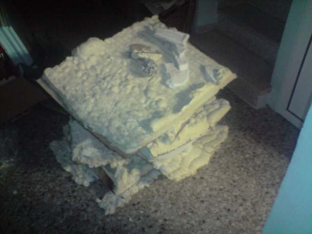 Lo del cemento es muy engorroso, y acabe algo desesperado de ello. Quiero dejar la espuma tal cual cae (por el efecto roca que deja), si alguien conoce forma de endurecerlo antes de pintar, y que no tenga que implicar "modelar" la espuma, que lo comente, publico o privadamente.