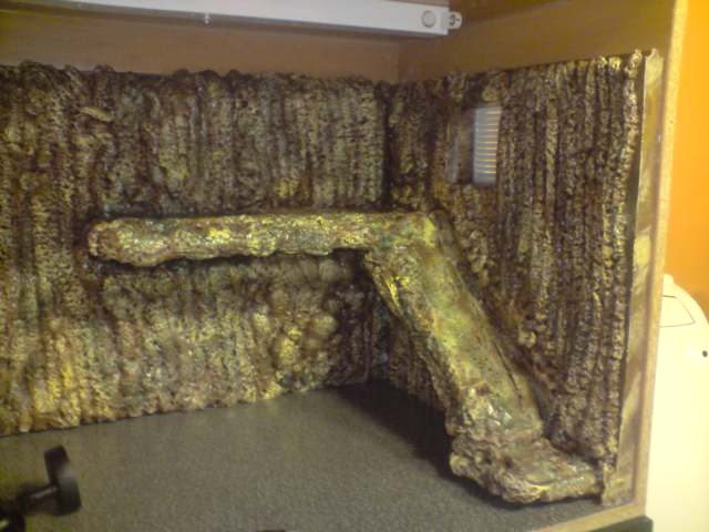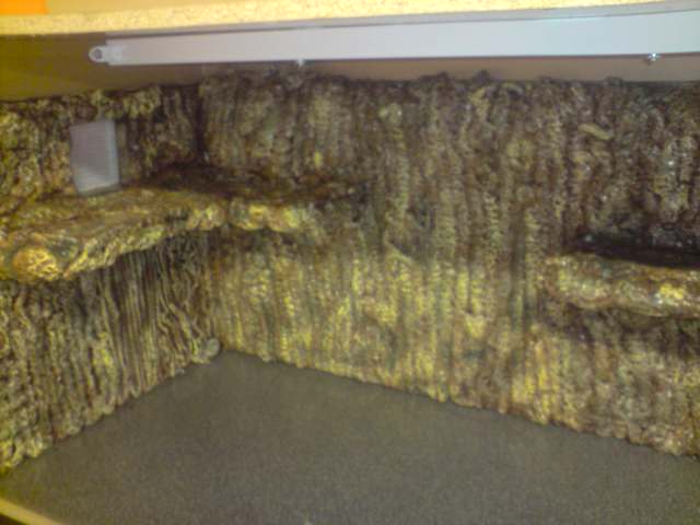Secada la espuma pinte sobre ella, primero con un color "marron pardo" (muy oscuro), le di varias manos hasta recubrir todos los rincones (dificil de la ostia... armaos de paciencia y un poco de metadona para relajaros... mas que nada porque es un poco desesperante, no quisiera hacer de este comentario apologia de las drogas).