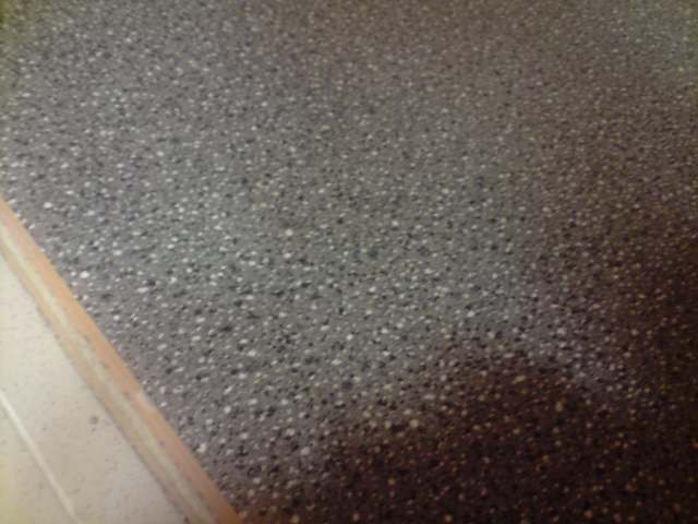 Es un vinilo de goma, con un grosor muy finito, y un estampado imitando granito. Aqui el detalle del estampado: