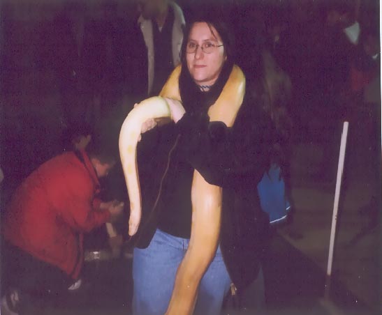 Yo tengo por aqui un par de fotos que me hice con un aguila calva americana que no veais como pesaba el bicharaco y con una piton molurus albino green (la fase que es la he descubierto recientemente gracias a los foreros). Son dos fotos que me encantan, los animales son fascinantes, no os imaginais que experiencia.