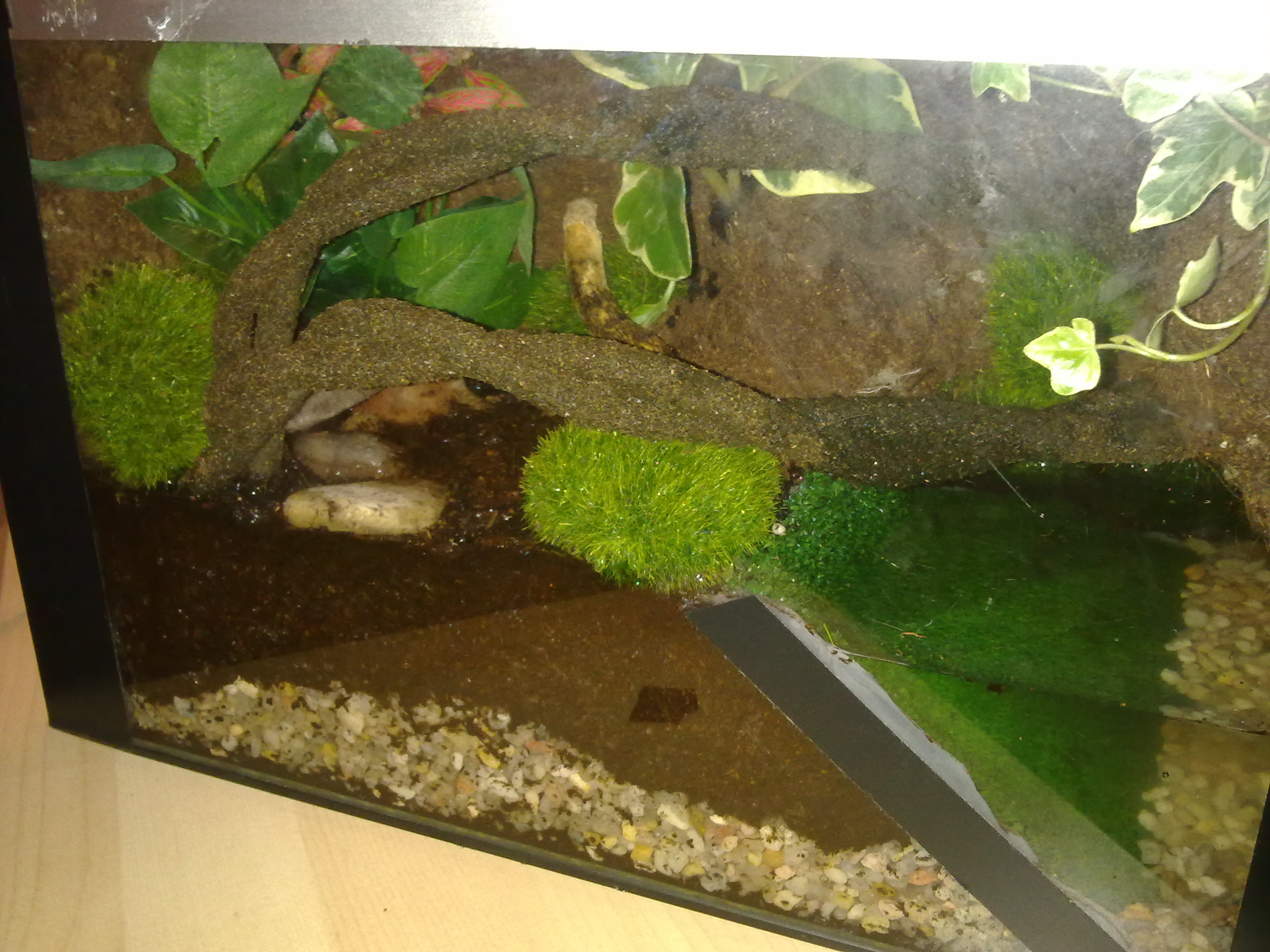 Hola a todos, soy nuevo en los foros, el foro y en el mundo de los anfibios, al grano, me dio el gusanillo de comprarme una dendrobates, pero leí en el foro que son bastante delicadas y que la mejor especie para principiante es la bombina orientalis, asique prepare mi acuaterrario y la e comprado, pero tengo bastantes dudas, una, la bombina me resulta algo flaca, me la vendio adulta (o al menos eso dijo), es como marroncita, ¿es normal que sea algo flaca o tenia que ser rechoncha? El miedo esta en que me la vendieran enferma, otra pregunta es, ¿como alimentarla?, la verdad los grillos es lo que e leído que es lo mejor, y tengo microgrillos, me gustaría saber como criarlos, e estado informándome y la verdad me resulta bastante complicado, que alimento podría ser fácil de cultivar y que no me de muchos problemas, también pensé que no se vosotros que me diréis, en alimentarla con carne o pescado congelado y unas pinzas, ya que me resulta mas económico y menos engorroso, pero claro yo no se si la rana lo aceptara bien eso, otra pregunta es, es totalmente necesario comprar los suplementos o abría otra forma de mantener la rana sin ellos, la bombina la tengo en una pecera de 20l con las pareces como vi en algunos tutoriales con espuma de poliuretano, con turba rubia y una charquita de unos 10cm de profundidad, no se si es recomendable eso, la verdad es que quiero una sola bombina y espero que sea el espacio suficiente, la ventilación la tengo echa con una especie de marco con tela mosquitera metálica por lo que se podría decir que no tiene tapa, no se si necesitaría algún ventilador, la iluminación proviene de la ventana ya que la tengo al lado pero no le llega a dar el sol directo pero si tiene bastante claridad, e visto que en el acuario me salió algo de moho que lo retire hace un par de días y no e vuelto a ver nada mas, y espero que no sea perjudicial para el animal.