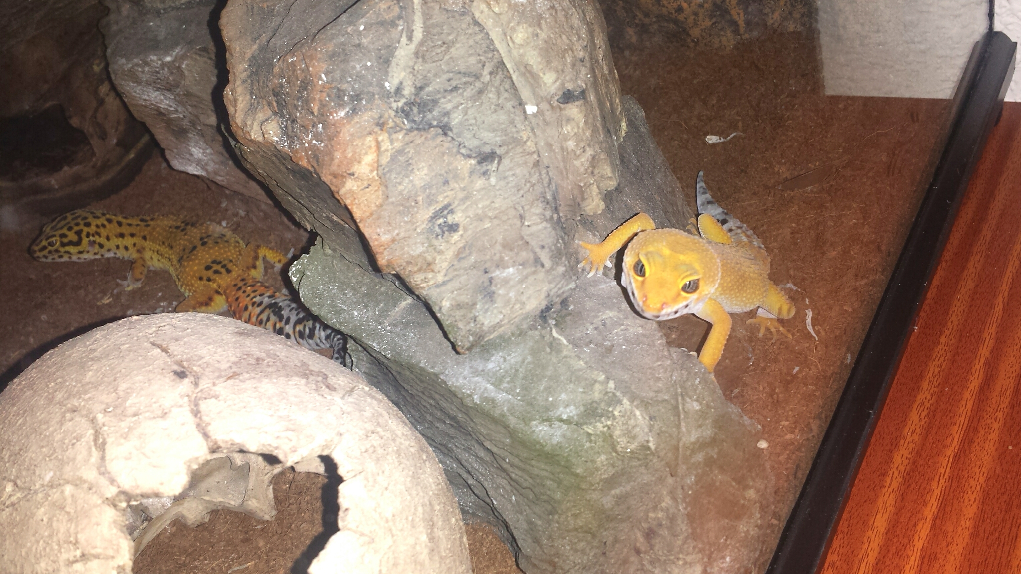 Hola, buenos días. Esta mañana he estado en Expoterraria de Madrid, y me he llevado un gecko leopardo. Pone que es Super Hypo Tagerine, es correcto?. Es un poco nerviosa por lo que parece. Por otro lado, la he juntado con otra que ya tenía, Hight Yellow, que es más grande, y parece que se persiguen, es normal?. Son territoriales?. Tenia entendido que se podía tener 2 hembras juntas.