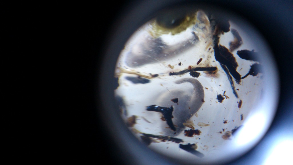 os dejo unas fotos de la puesta en su 8º día... Puedo ver que hay huevos desarrollándose claramente, pero otros no. Los que van bien comienzan ya hacer movimientos...