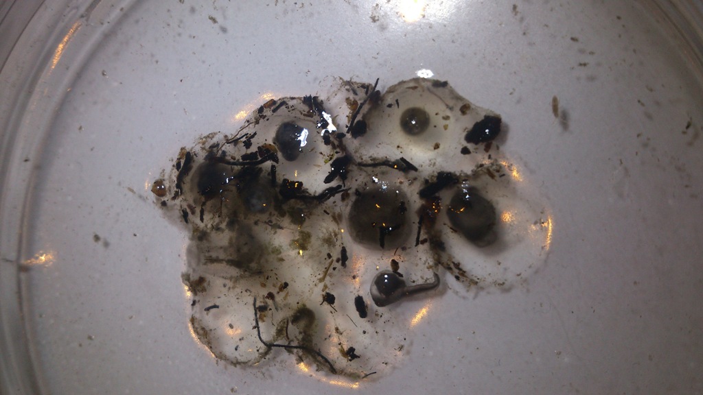que buena pinta tiene esa puesta ;) yo con el agua no me complicaria mucho,utilizaria la misma que uses para el sistema de lluvia(si a los adultos les va bien supongo que a los renacuajos tambien)yo utilizaria el agua que se queda en el doble fondo del terrario..pero no se,si te salen 8 cuajos puedes dividirlos en dos tipos de agua unos ponerlos con agua del doble fondo y otros con agua como dice prelu por si acaso :mad: