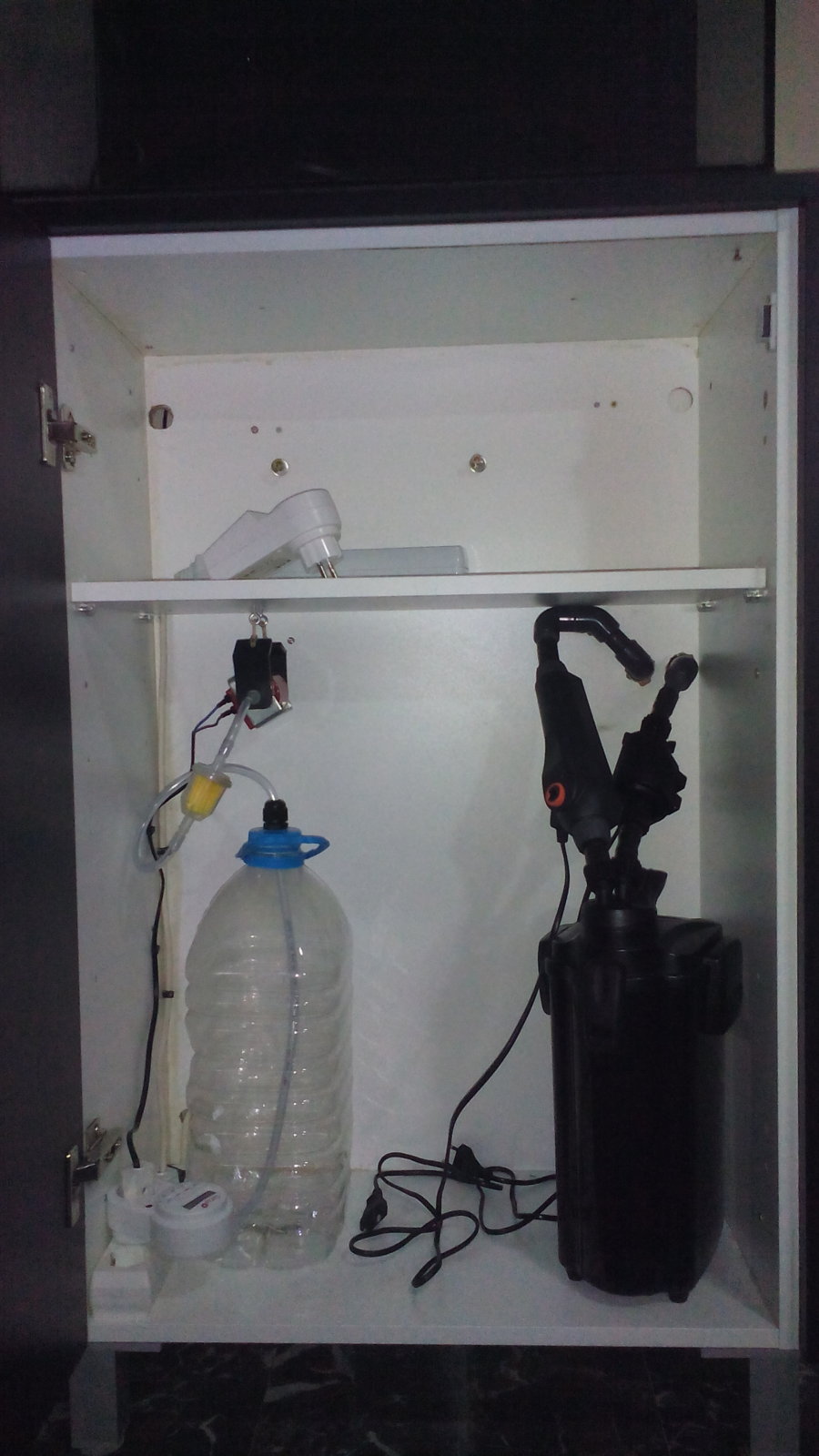 para esta parte voy a utilizar un filtro y calentador externo que estaba utilizando en un gamnario que he desarmado para montar el terrario en ese mueble.