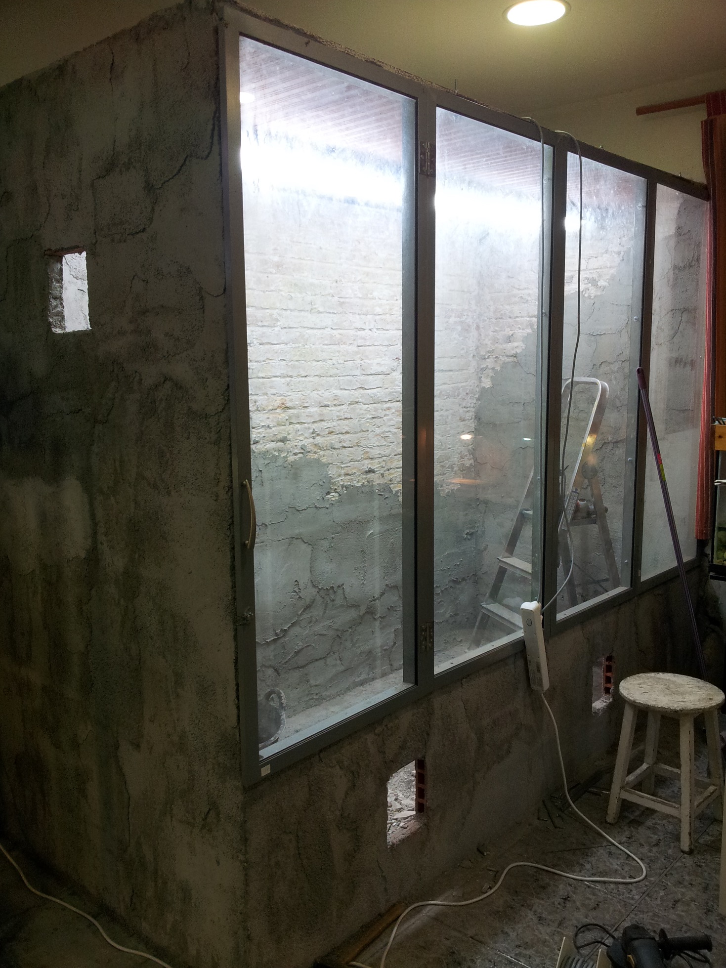 Yo que tu, entre mil cosas mas, forraba todas las paredes interiores con malla verde plástica, para que los animales pudieran trepar por ellas. Y las ramas serían en realidad repisas de madera de lado a lado del terrario. Unas horizontales y otras inclinadas, pero nada tocando suelo, que las iguanas para subir se vieran obligadas a trepar por las paredes.