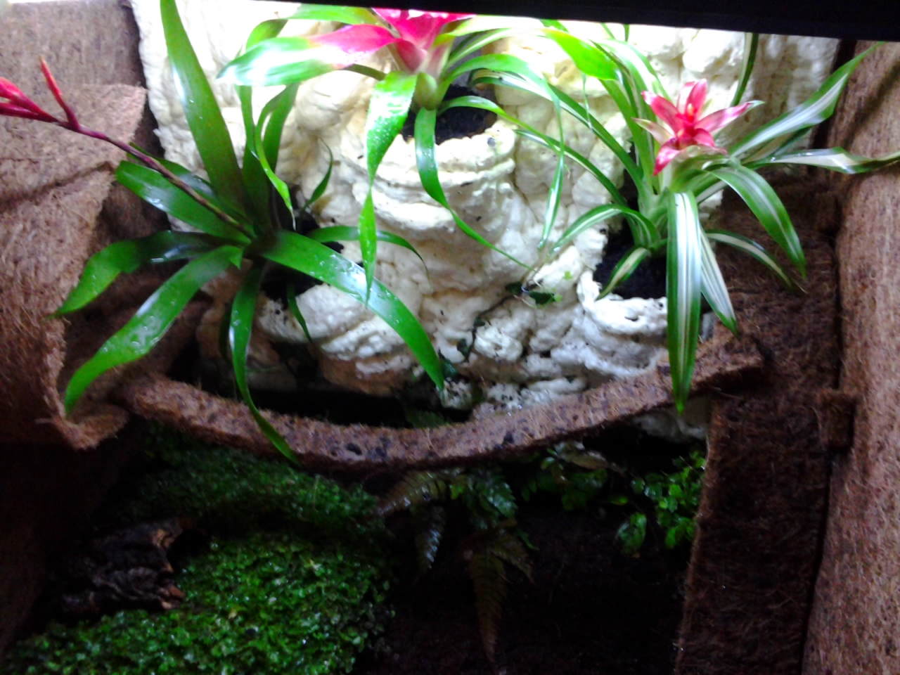 Como digo es un proyecto y lo tengo madurando con helechos, una planta tapizante de suelo, 2 ficus repens para los laterales, hiedras para tapizar la trasera y 3 bromelias, voy a darle tiempo para que las hiedras tapicen la trasera y oculten el color de la espuma, es una prueba para ver el resultado final, vi un terrario similar, sin cubrir la espuma con coco, simplemente tapizada con hiedras y el resultado me gustó mucho.